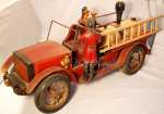 Machetă mașină pompieri din lemn cu figurine din elastan, Germania, cca 1940.