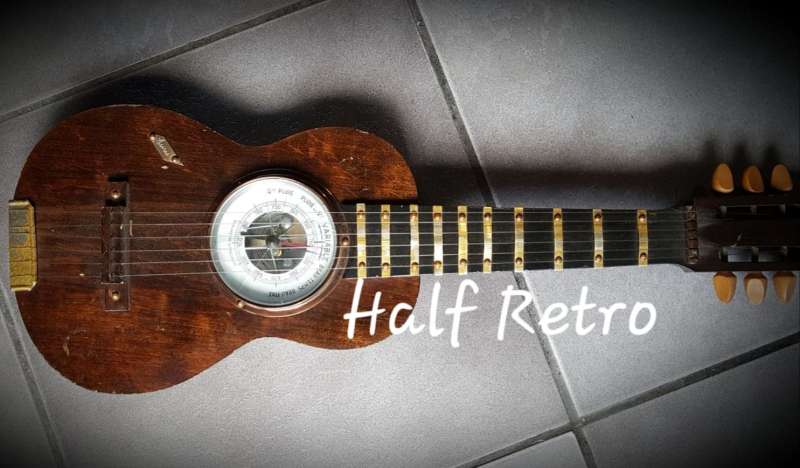 Barometru de perete sub formă de chitară din lemn cu alamă, Franța, cca 1940, în stare de funcționare. Geamul este spart.