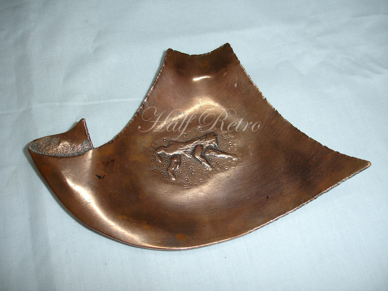 Scrumieră cu urs, cupru, cu sistem de prindere pe perete, Germania, cca 1950.